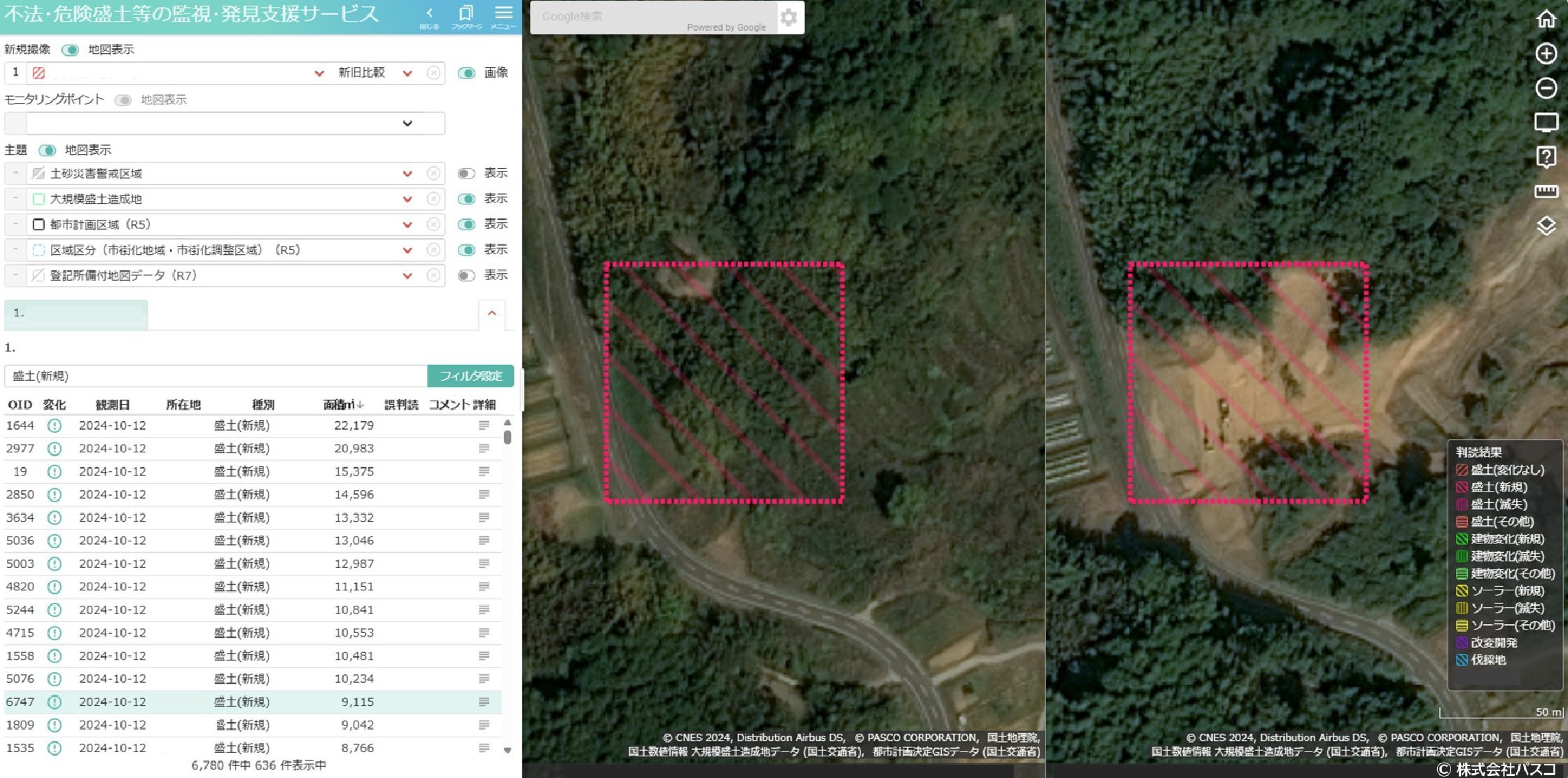 衛星画像とAI解析技術を活用し、広域的に土地改変箇所を抽出・提供するクラウド型サービス『MiteMiru盛土』を提供し、盛土等の土地改変箇所を広域的に抽出、不法・危険盛土等の監視・発見業務を支援します。