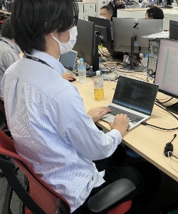現在は、製品のバージョンアップ作業、保守作業、モバイルシステムの構築作業をおこなっています。どのような仕事でも自分だけで100%達成できる仕事はありません。チームメンバーや他事業部の方々と協力しあうためにも、相手の考えや状況を尊重しながら業務をしています。