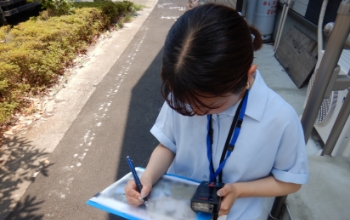 車で現地調査地へ向かいます。