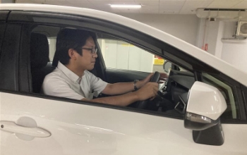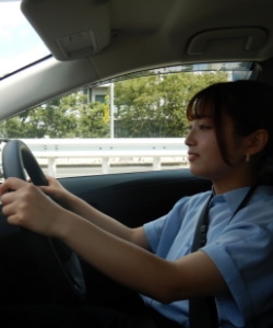 お客様のところへ往訪するため会社を出発します。営業車にて移動中にはお客様のところで話す内容を声に出して確認・練習しています。